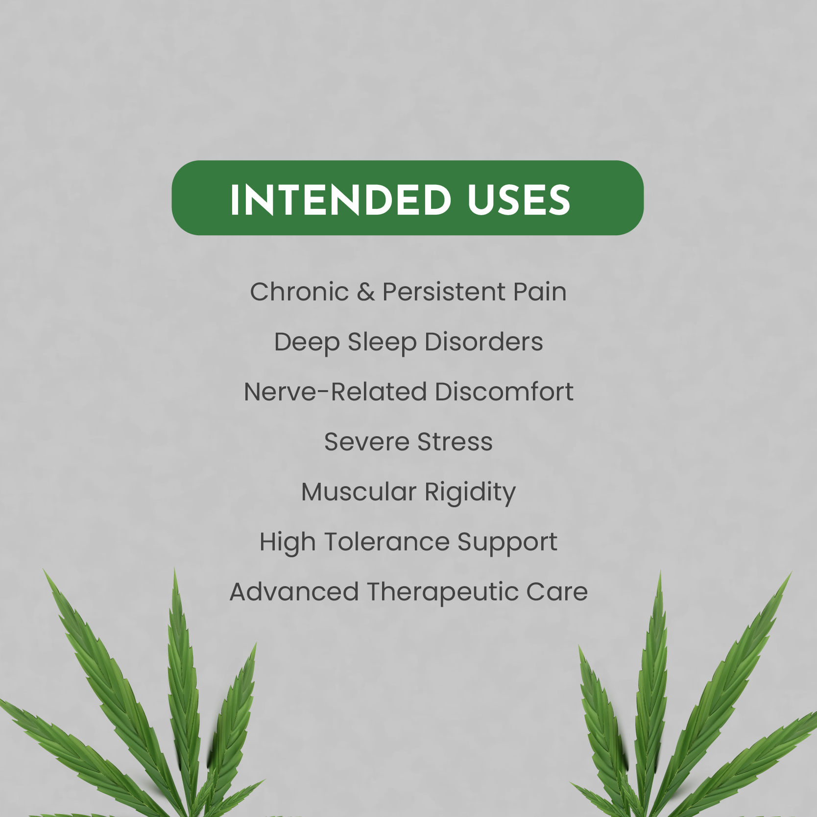 Designed for patients who require higher cannabinoid potency under physician supervision, this formulation is suitable when lower-dose variants are insufficient for symptom control.
